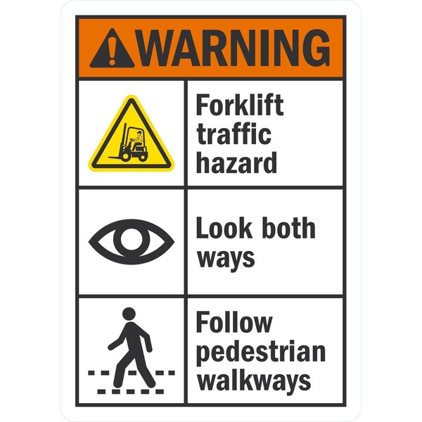 Forklift Traffic Hazard, Look Both Ways, Follow, 10x14, Non-Reflective, White