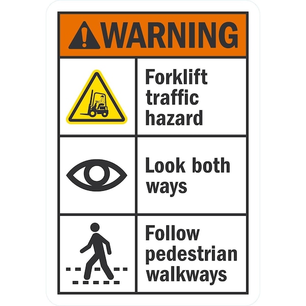 Forklift Traffic Hazard, Look Both Ways, Follow, 3.5x5, Non-Reflective, White