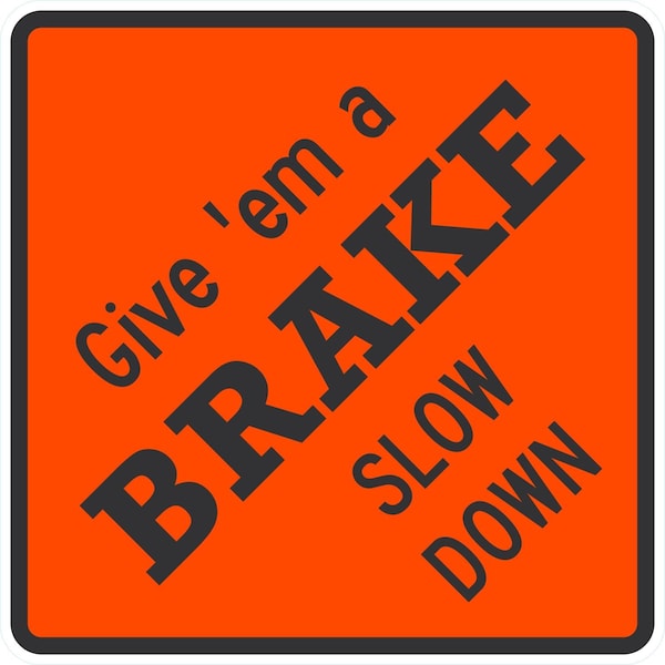 Give 'em a Brake Slow Down, 24x24, Engineer Grade, Orange