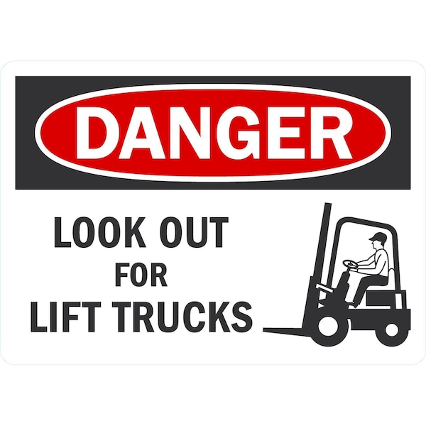 Graphic Look Out For Lift Trucks, 7x5, Engineer Grade, White