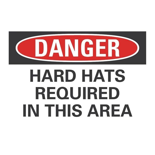 Hard Hat Danger Label, Horizontal Rectangle, Number of Printed Sides 1, English, Sign Format Traditional OSHA, Sign Legend Hard Hats Required In This Area, Sign Legend Background Color White, Sign Legend Style Text
