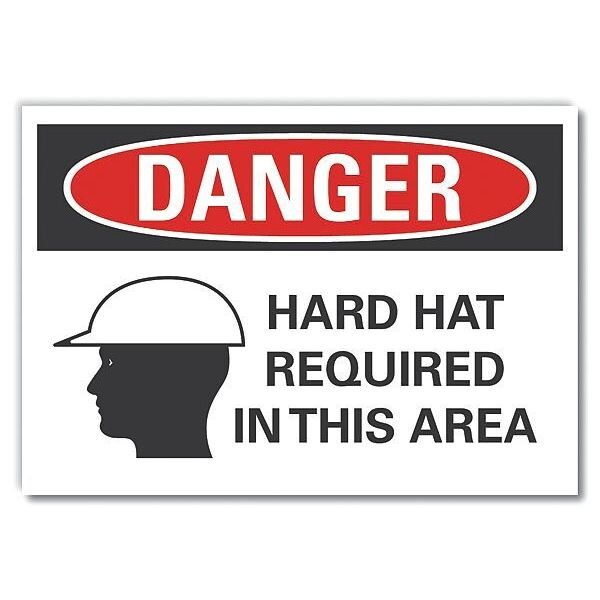 Hard Hat Danger Label, 7 in Height, 10 in Width, Polyester, Vertical Rectangle, English