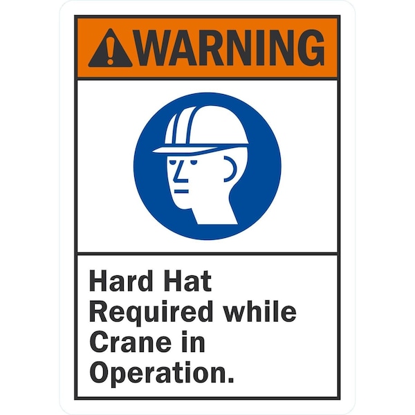 Hard Hat Required While Crane In Operation, 10x14, Non-Reflective, White