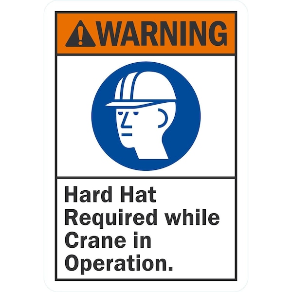 Hard Hat Required While Crane In Operation, 7x10, Non-Reflective, White