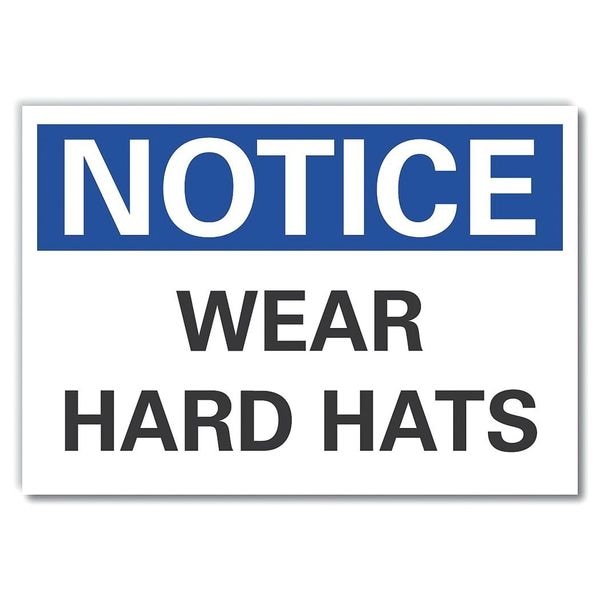 Hard Hats Notice Label, Horizontal Rectangle, Number of Printed Sides 1, English, Sign Format Traditional OSHA, Sign Legend Wear Hard Hats, Sign Legend Background Color White, Sign Legend Style Text