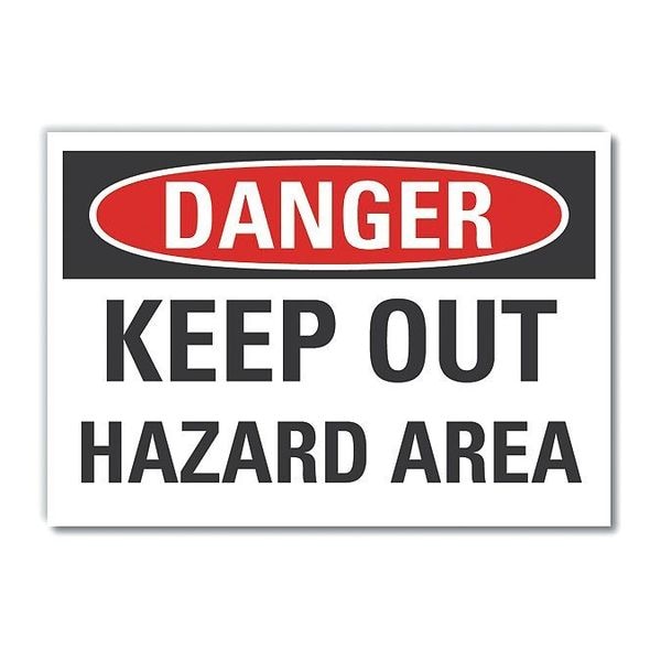Hazard Area Danger Label, Horizontal Rectangle, Number of Printed Sides 1, English, Sign Format Traditional OSHA, Sign Legend Keep Out Hazard Area, Sign Legend Background Color White, Sign Legend Style Text