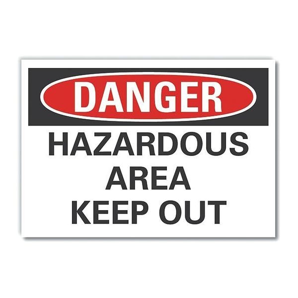 Hazard Area Danger Label, Horizontal Rectangle, Number of Printed Sides 1, English, Sign Format Traditional OSHA, Sign Legend Hazardous Area Keep Out, Sign Legend Background Color White, Sign Legend Style Text