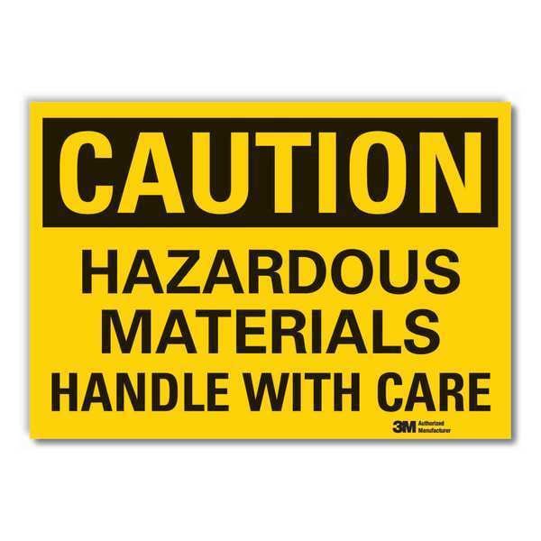Hazardous Materials Caution Reflective Label, Horizontal Rectangle, Number of Printed Sides 1, English, Sign Format Traditional OSHA, Sign Legend Hazardous Materials Handle With Care, Sign Legend Background Color Yellow, Sign Legend Style Text