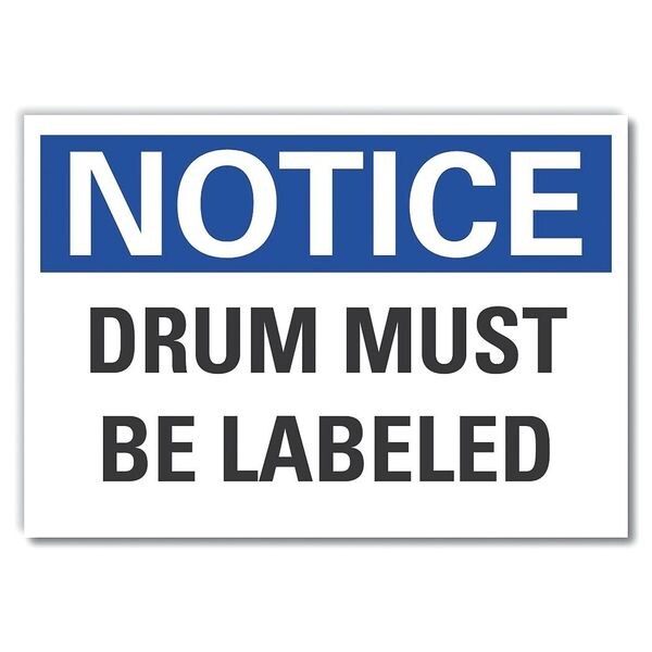 Hazardous Materials Notice Label, Horizontal Rectangle, Number of Printed Sides 1, English, Sign Format Traditional OSHA, Sign Legend Drum Must Be Labeled, Sign Legend Background Color White, Sign Legend Style Text