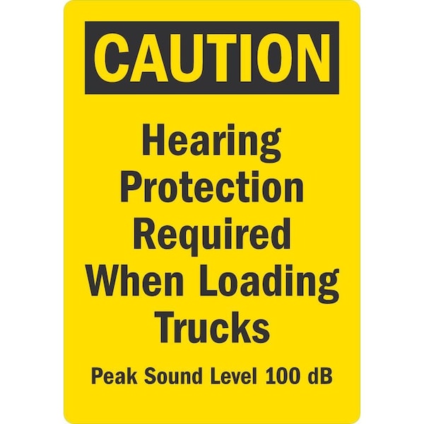 Hearing Protection Required When Loading Trucks, Peak Sound, 3.5x5, Non-Reflective, Yellow