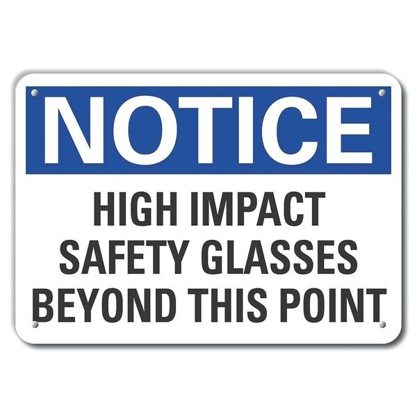 Plastic Eye Notice Sign, Horizontal Rectangle, Number of Printed Sides 1, English, Sign Format ANSI/OSHA Format, Sign Legend High Impact Safety Glasses Beyond This Point, Sign Legend Background Color White, Sign Legend Style Text