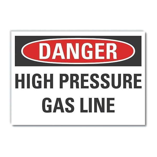 High Pressure Danger Label, Horizontal Rectangle, Number of Printed Sides 1, English, Sign Format Traditional OSHA, Sign Legend High Pressure Gas Line, Sign Legend Background Color White, Sign Legend Style Text