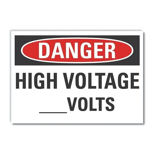 High Voltage Danger Label, Horizontal Rectangle, Number of Printed Sides 1, English, Sign Format Traditional OSHA, Sign Legend High Voltage ___Volts, Sign Legend Background Color White, Sign Legend Style Text