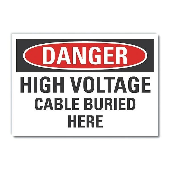 High Voltage Danger Label, Vertical Rectangle, Number of Printed Sides 1, English, Sign Format Traditional OSHA, Sign Legend High Voltage Cable Buried Here, Sign Legend Background Color White, Sign Legend Style Text