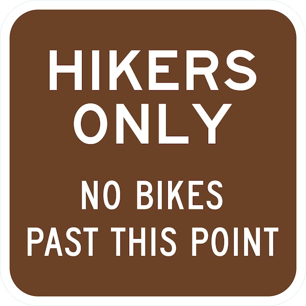 Hikers Only No Bikes Past This Point, 12x12, Engineer Grade, Brown