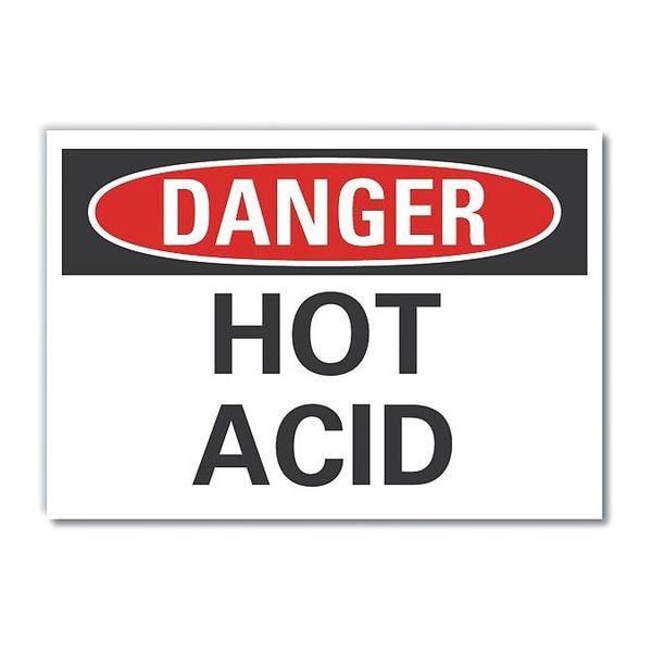 Hot Acid Danger Label, Vertical Rectangle, Number of Printed Sides 1, English, Sign Format Traditional OSHA, Sign Legend Hot Acid, Sign Legend Background Color White, Sign Legend Style Text
