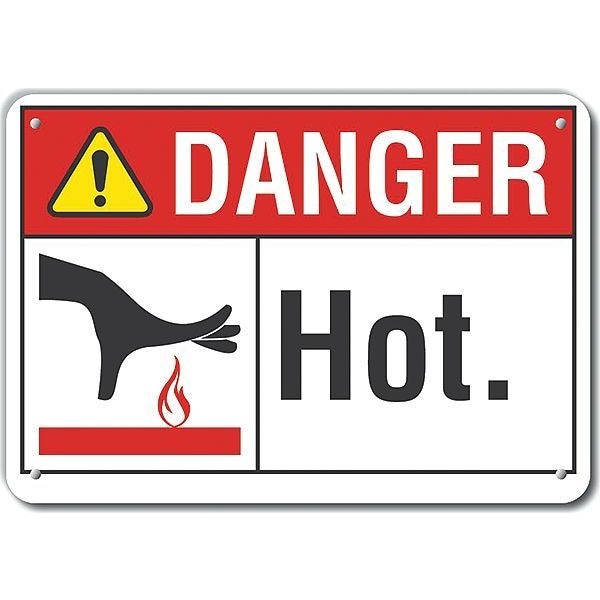 Plastic Hot Danger Sign, Horizontal Rectangle, Number of Printed Sides 1, English, Sign Format ANSI/OSHA Format, Sign Legend Hot., Sign Legend Background Color White, Sign Legend Style Symbol and Text