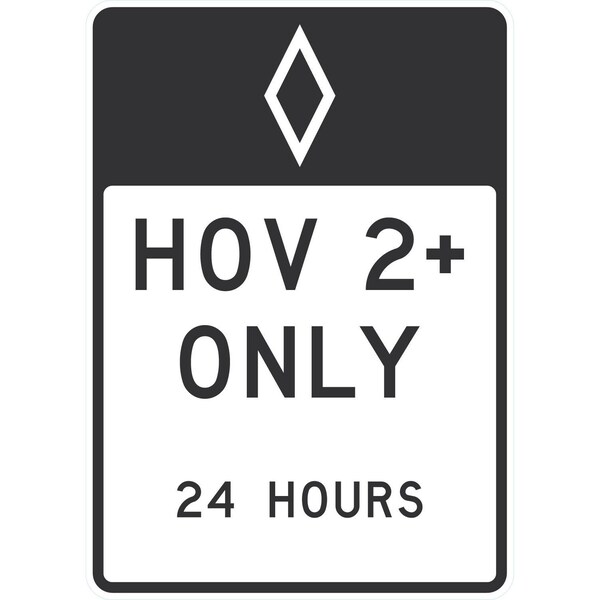 (HOV symbol) HOV 2+ Only, 24 Hours, 30x42, Engineer Grade, White
