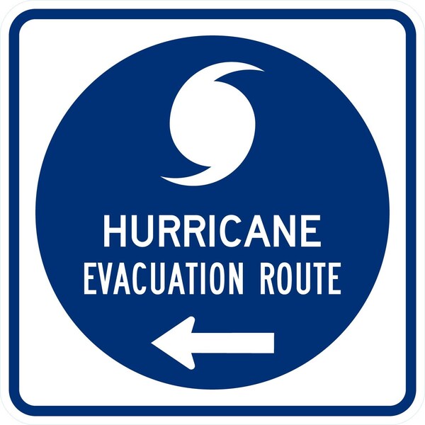 Hurricane Evacuation Route With Left Arrow, 24x24, Non-Reflective, Blue