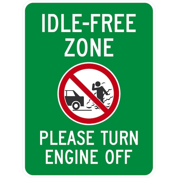 Idle-Free Zone Please Turn Engine Off with Graphic, 18x24, Non-Reflective, White