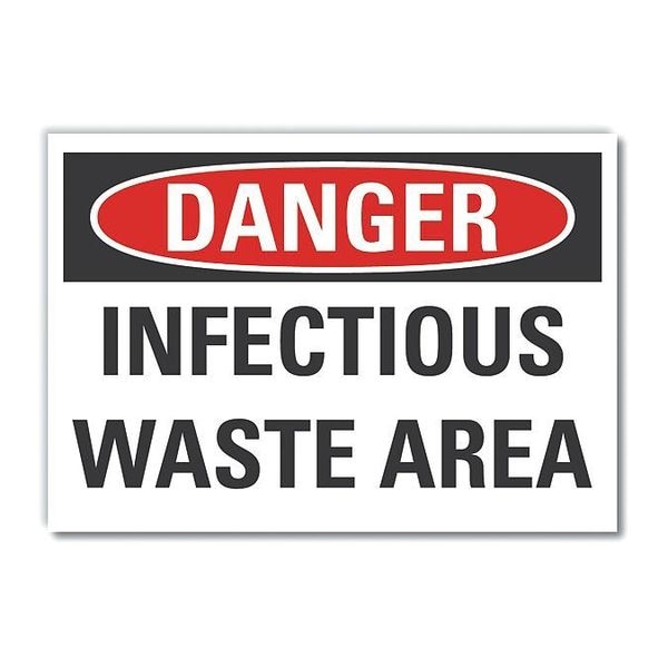 Infectious Waste Danger Label, Horizontal Rectangle, Number of Printed Sides 1, English, Sign Format Traditional OSHA, Sign Legend Infectious Waste Area, Sign Legend Background Color White, Sign Legend Style Text