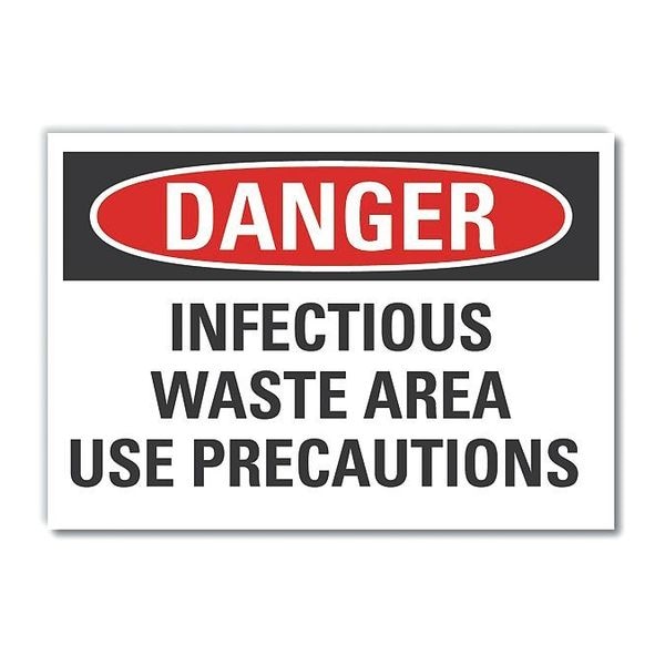 Infectious Waste Danger Label, Horizontal Rectangle, Number of Printed Sides 1, English, Sign Format Traditional OSHA, Sign Legend Infectious Waste Area Use Precautions, Sign Legend Background Color White, Sign Legend Style Text