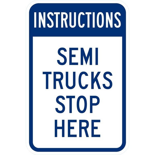 Instructions Semi Trucks Stop Here, 12x18, Diamond Grade, White