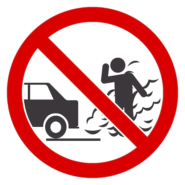 ISO No Idling Engine With Car Pollution Symbol, 6x6, Non-Reflective, White