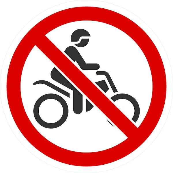 ISO No Motorbikes Symbol, 10x10, Non-Reflective, White