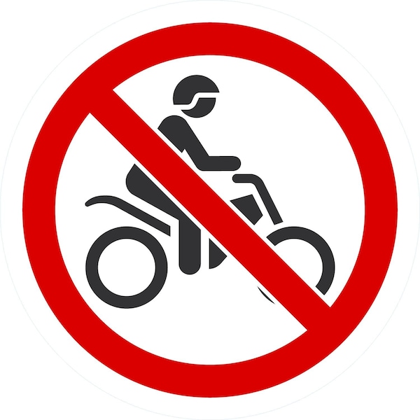 ISO No Motorbikes Symbol, 11.75x11.75, Non-Reflective, White