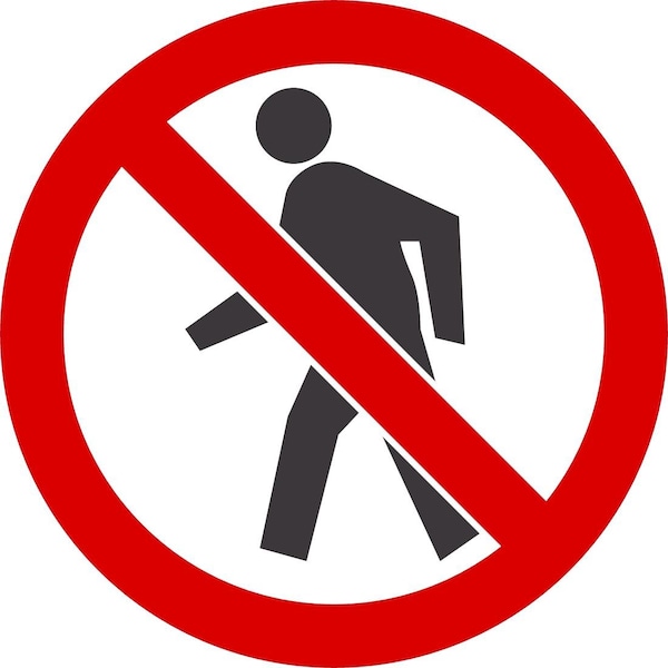 ISO No Pedestrians Symbol, 6x6, Non-Reflective, White