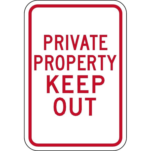 This heavy-duty "Private Property Keep Out" Property Control Sign protects your property from unwanted traffic. This sign is made of .080" rustproof aluminum with a highly reflective surface that provides added visibility in low-light conditions. Screen-printed with UV-resistant inks prevent fading and lets you get your message across day or night. Pre-drilled holes in top and bottom of sign allow mounting on U-channel steel posts,, with holes on 1" centers. 18"H x 12"W.