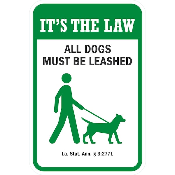 It's The Law, All Dogs Must Be Leashed, 12x18, Engineer Grade, White
