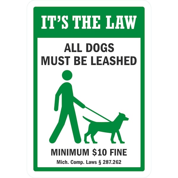 It's The Law, All Dogs Must Be Leashed Minimum, 7x10, Non-Reflective, White