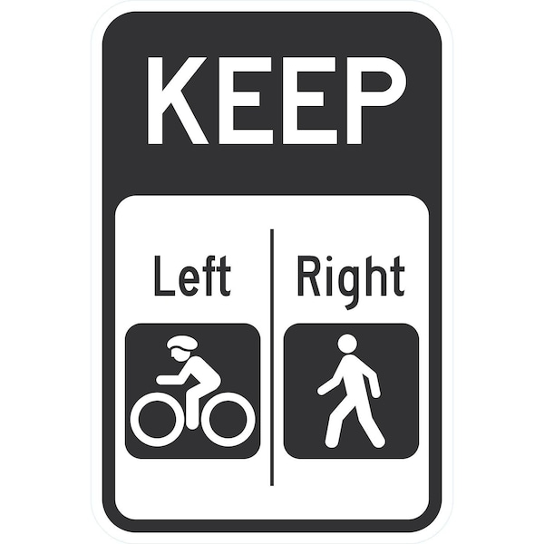 Keep Left Cyclists, Right Pedestrian, 12x18, Diamond Grade, White
