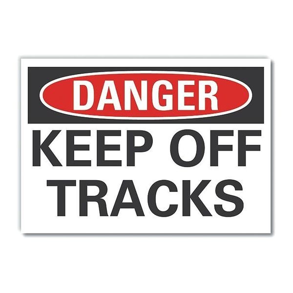 Keep Off Danger Label, Vertical Rectangle, Number of Printed Sides 1, English, Sign Format Traditional OSHA, Sign Legend Keep Off Tracks, Sign Legend Background Color White, Sign Legend Style Text