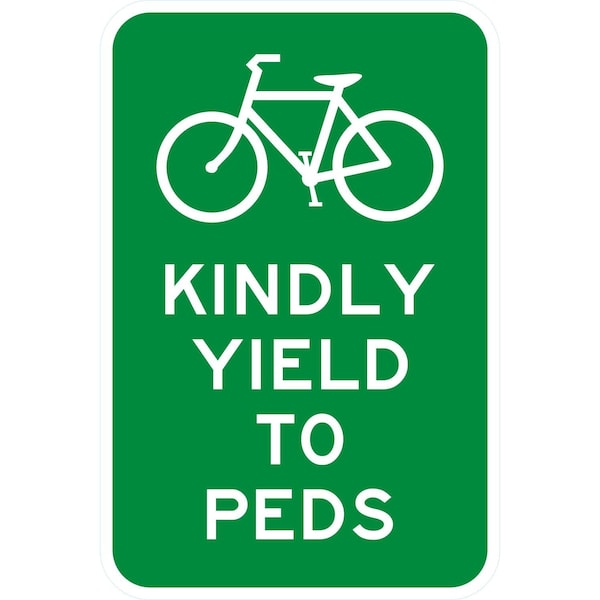 Kindly Yield To Peds (with Bicycle Symbol), 12x18, Engineer Grade, White