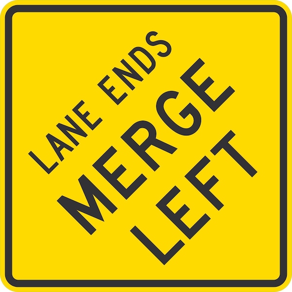 Lane Ends Merge Left, 30x30, Diamond Grade, Yellow