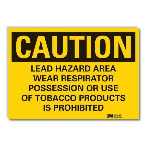 Lead Hazard Caution Reflective Label, Horizontal Rectangle, Number of Printed Sides 1, English, Sign Format Traditional OSHA, Sign Legend Lead Hazard Area Wear Respirator Possession Or Use Of Tobacco Products Is Prohibited, Sign Legend Background Color Yellow, Sign Legend Style Text