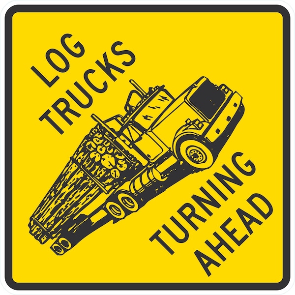 Log Trucks Turning Ahead, 24x24, Engineer Grade, Yellow