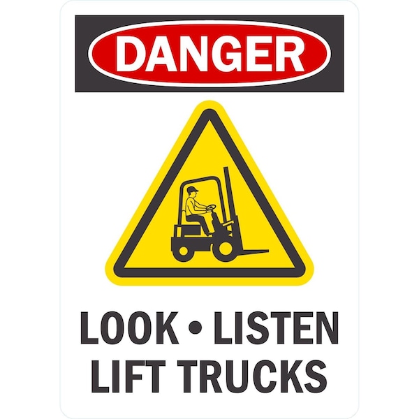 Look. Listen Lift Trucks (with Graphic), 5x7, Non-Reflective, White