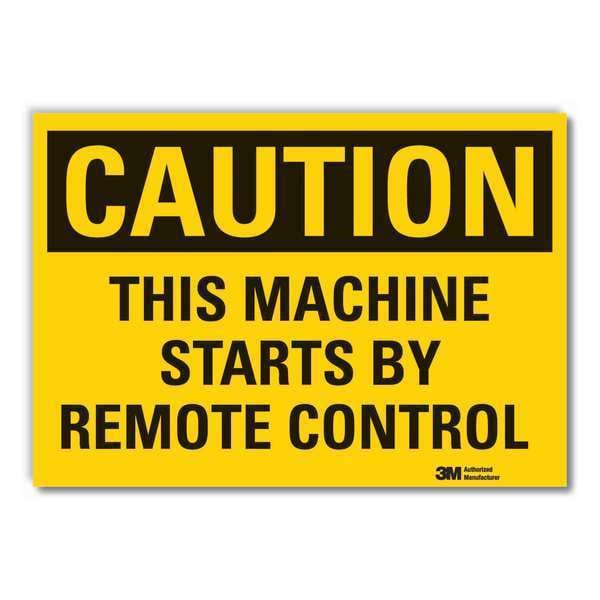 Machine & Operation Caution Reflective Label, Vertical Rectangle, Number of Printed Sides 1, English, Sign Format Traditional OSHA, Sign Legend This Machine Starts By Remote Control, Sign Legend Background Color Yellow, Sign Legend Style Text