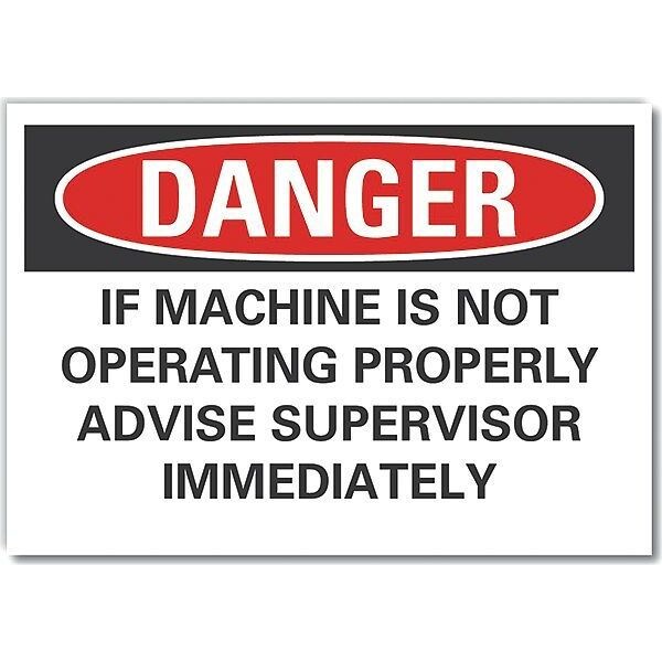 Machine & Operation Danger Label, Horizontal Rectangle, Number of Printed Sides 1, English, Sign Format Traditional OSHA, Sign Legend If Machine Is Not Operating Properly Advise Supervisor Immediately, Sign Legend Background Color White, Sign Legend Style Text