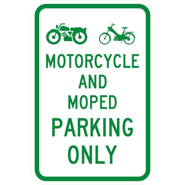 Motorcycle And Moped Parking Only with Graphics, 12x18, Non-Reflective, White