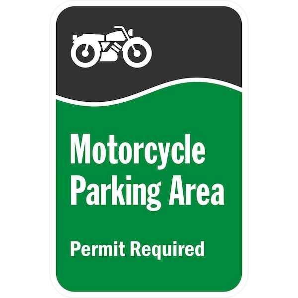 Motorcycle Parking Area. Permit Required With Graphic, 12x18, Diamond Grade, White