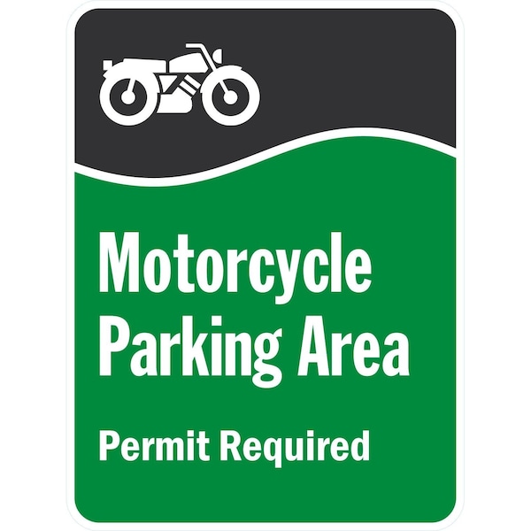 Motorcycle Parking Area. Permit Required With Graphic, 18x24, Non-Reflective, White