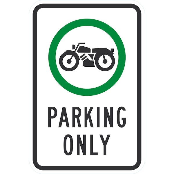 Motorcycle Parking Only (W/Graphic), 12x18, Diamond Grade, White