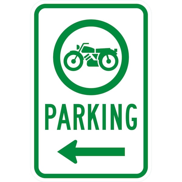 Motorcycle Parking <--- (W/Sym), 12x18, High Intensity Prismatic, White