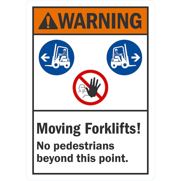 Moving Forklifts! No Pedestrians Beyond This Point (with Gra, 10x14, Non-Reflective, White
