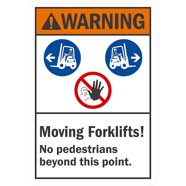 Moving Forklifts! No Pedestrians Beyond This Point (with Gra, 3.5x5, Non-Reflective, White